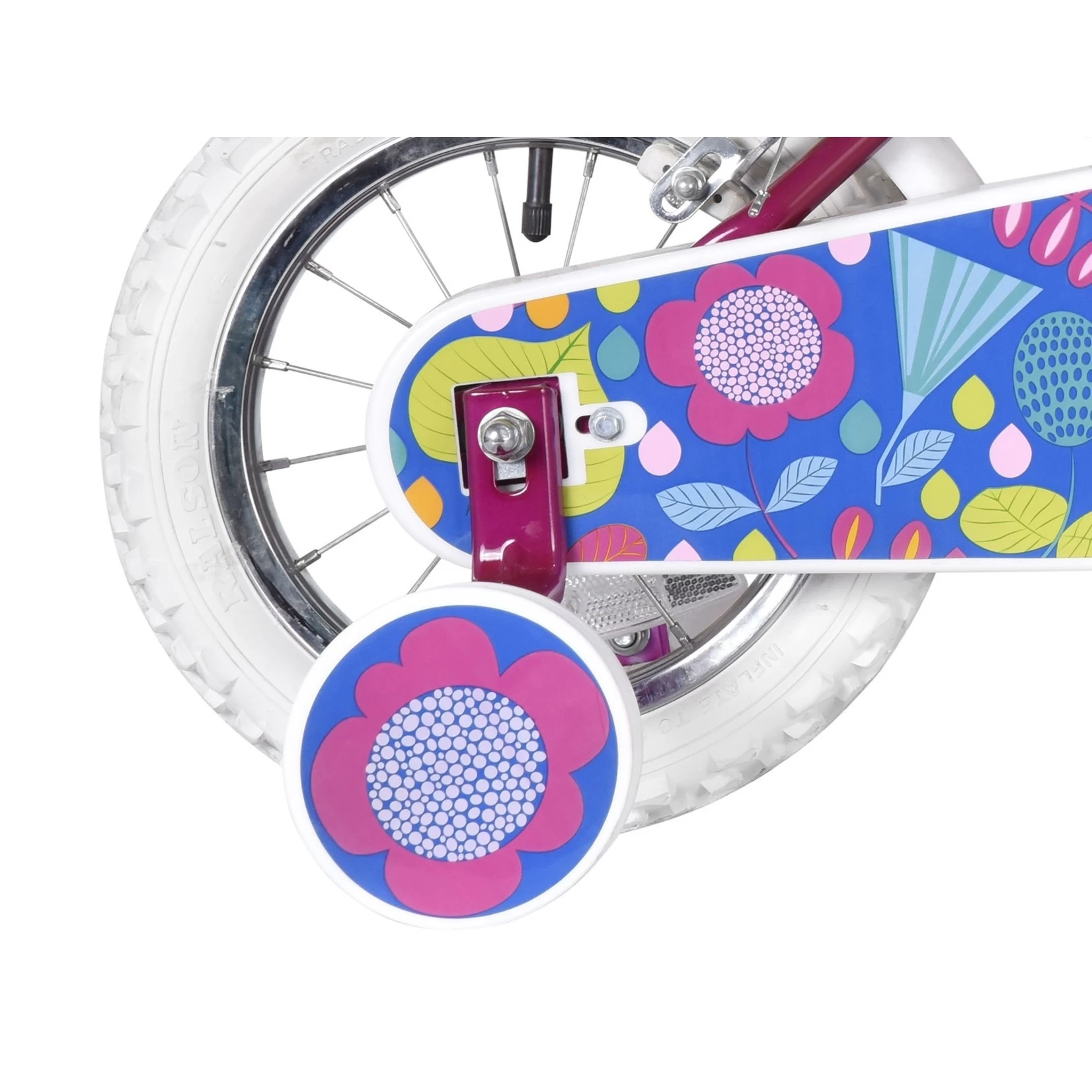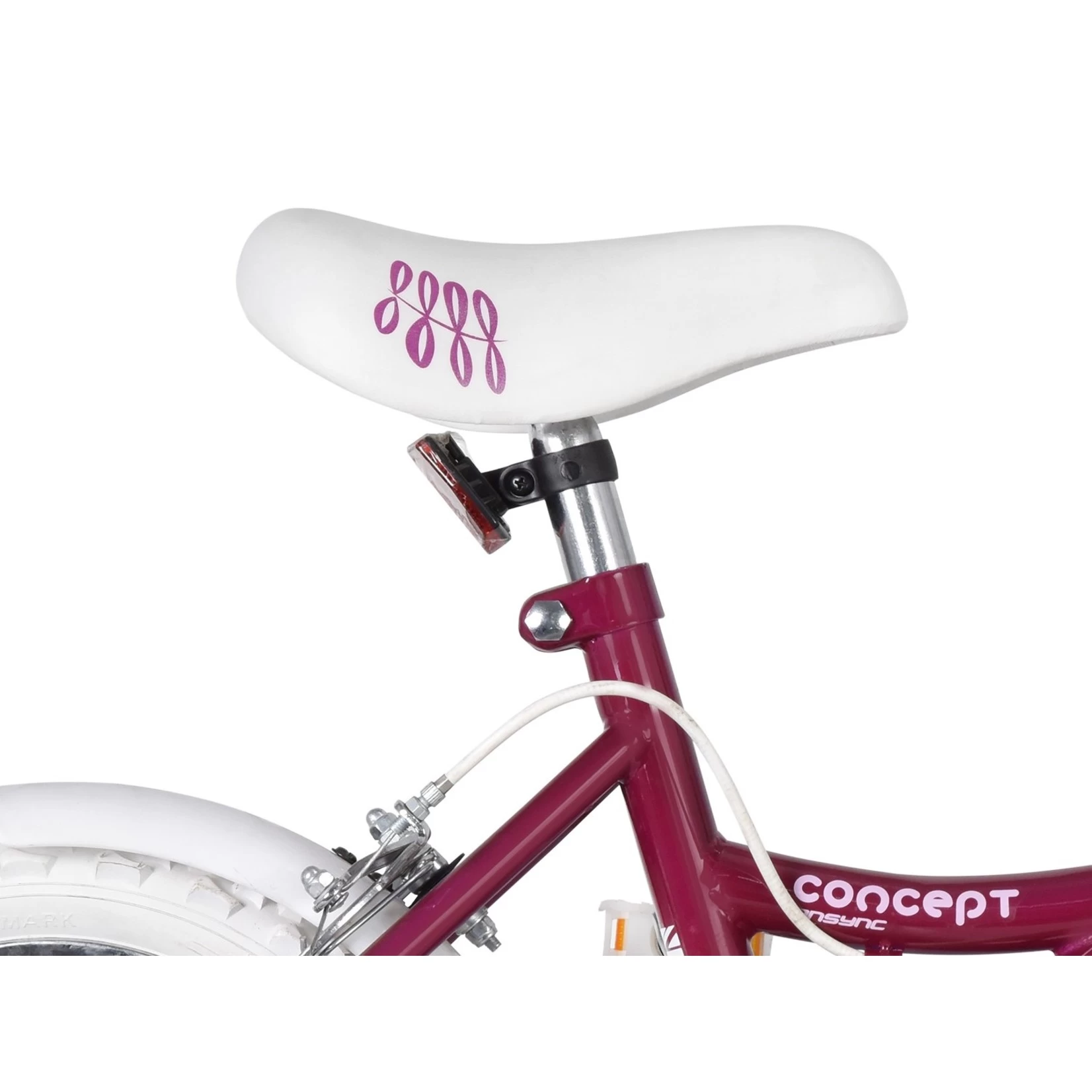 Another great bike from the clever bike geeks at Insync. The Enchanted comes equipped with a single speed freewheel transmission. Designed for the young rider taking their first rides with removable stabilizers and height adjustable saddle and handlebars. Finished in a pretty white and pink colour with elegant decals, matching stabilizers, chainguard and rims. Includes mudguards and front basket.
