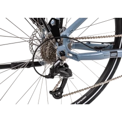 Exploring the stunning countryside or riding the distance to a quintessential little café can become a reality, regardless of your fitness level. Suitable for multi-purpose adventures with the stability of a mountain bike and the larger wheel/narrower tyre benefits of a road bike. A Bafang M200 mid drive system and powerful battery is built into a frame equipped with mudguards to keep you dry and pannier racks to help with luggage on longer adventures.