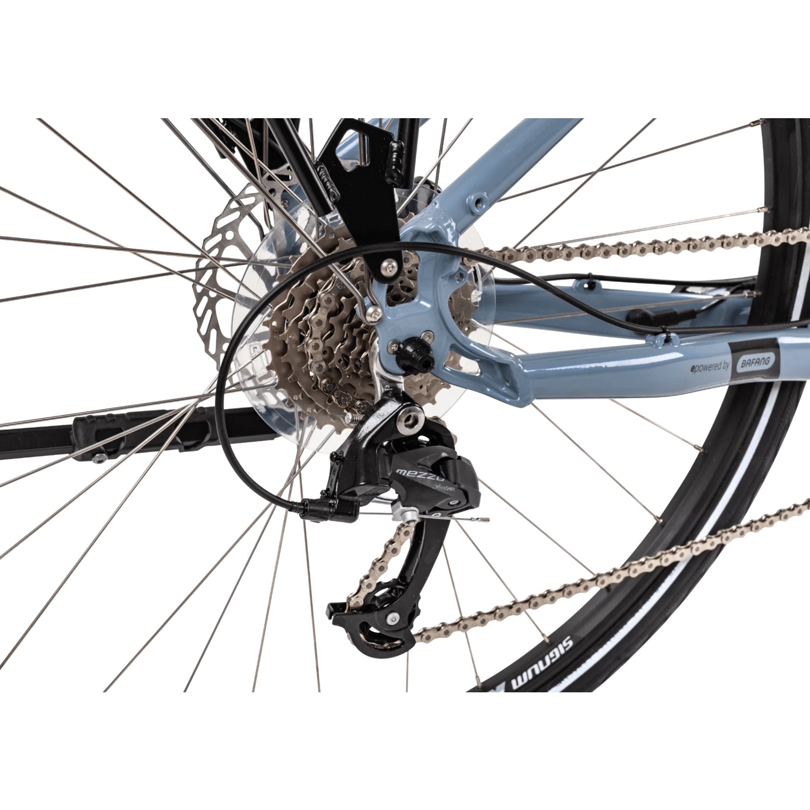One of the smoothest e-bike drive systems around. Built on to a lower step over frame, the powerful Bafang centre-motor system quietly boosts your power input to help you explore the lanes with easy and harmonious handling.