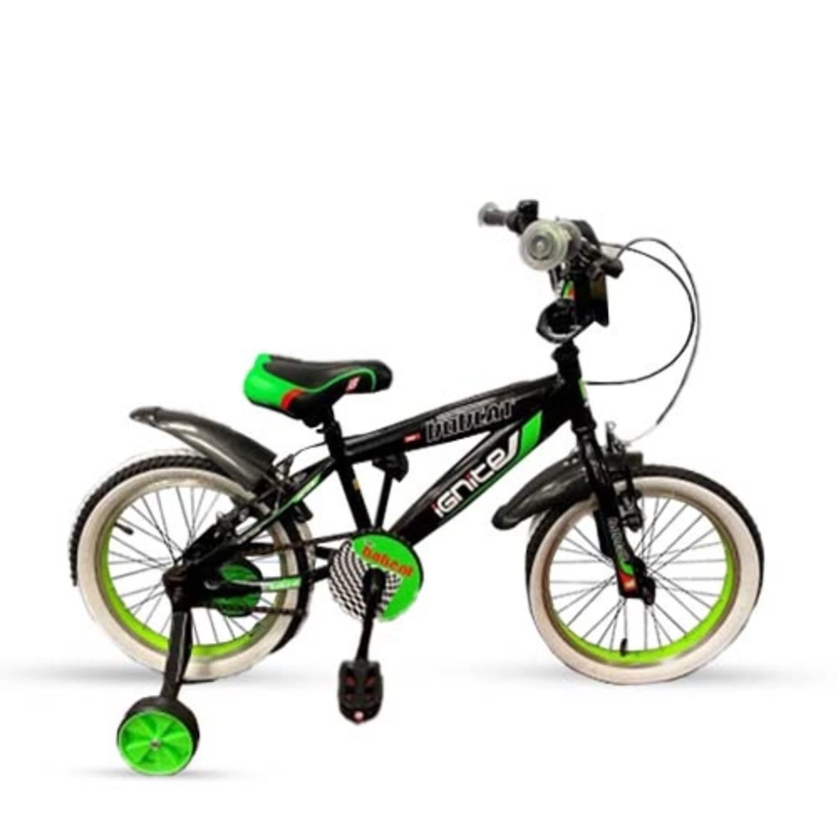16” Boys Bike, Steel frame, Alloy V-Brakes, Alloy rim wheels. Black/Green color scheme.